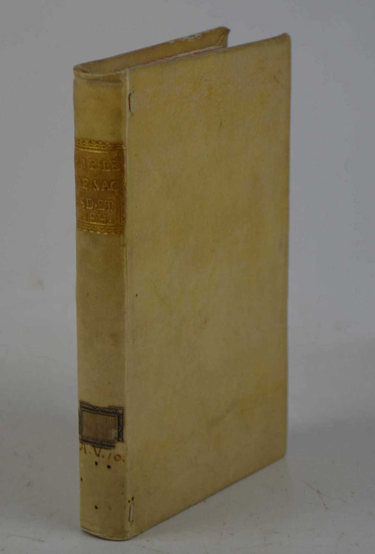 Cm. 16, pp. xvi (4) 262 (6). Solida leg. del tempo in piena pergamena rigida, dorso liscio con titoli in oro entro tassello e tagli colorati. Marca al frontespizio raffigurante la dea Fortuna appoggiata su ancora. Ex libris applicato all'interno del piatto anteriore. Esemplare ben conservato.
