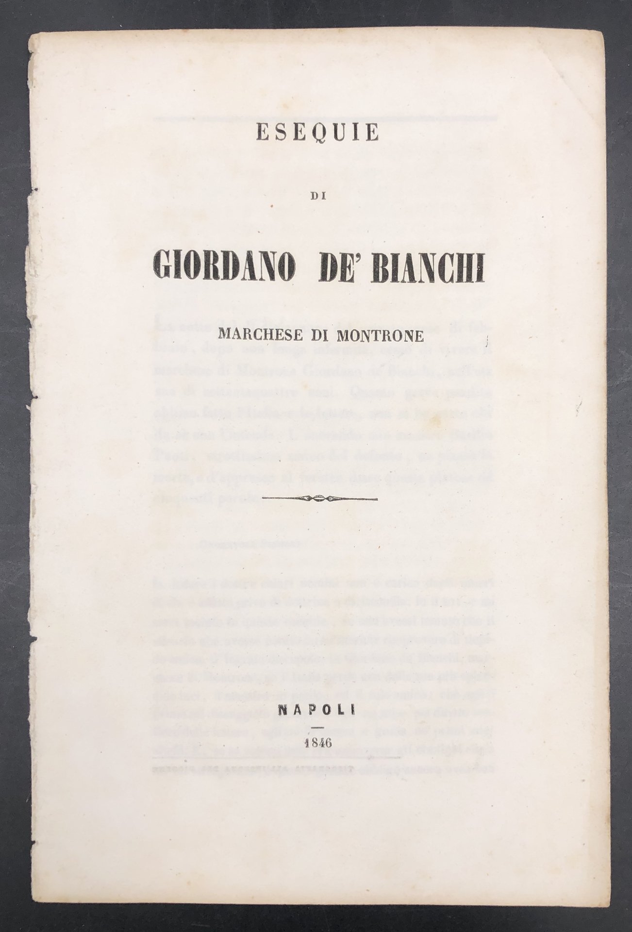 Esequie di GIORDANO de' BIANCHI Marchese di MONTRONE.
