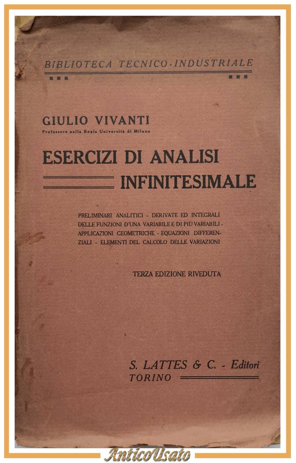 ESERCIZI DI ANALISI INFINITESIMALE di Giulio Vivanti 1935 Lattes Libro matematic