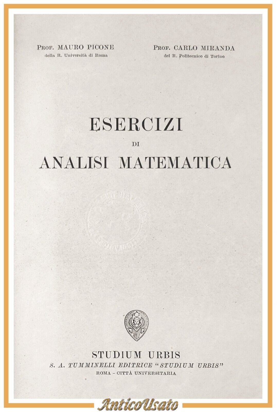 ESERCIZI DI ANALISI MATEMATICA di Picone e Miranda Studium Urbis libro manuale