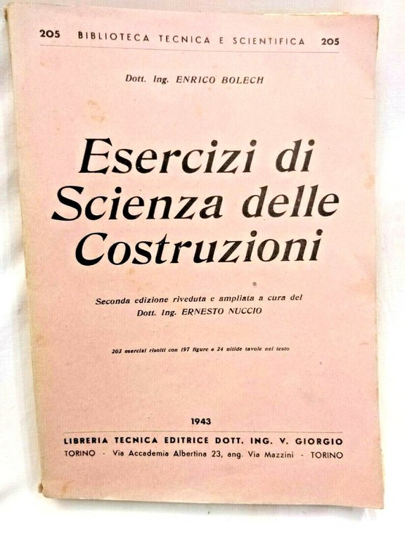 ESERCIZI DI SCIENZA DELLE COSTRUZIONI di Enrico Bolech 1943 libro ingegneria