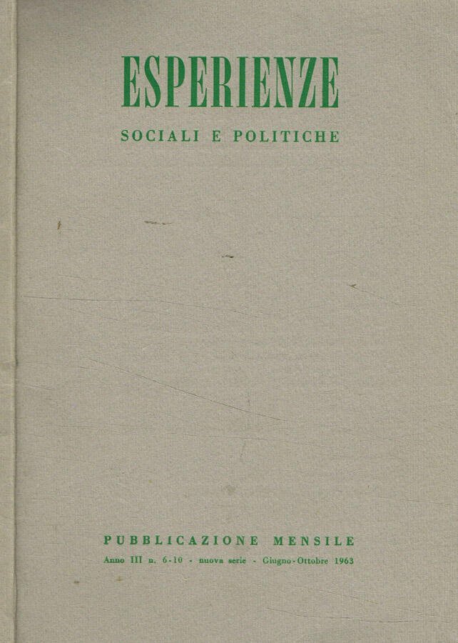Esperienze sociali e politiche. Pubblicazione mensile anno III, n.6-10 nuova serie, giugno-ottobre 1963