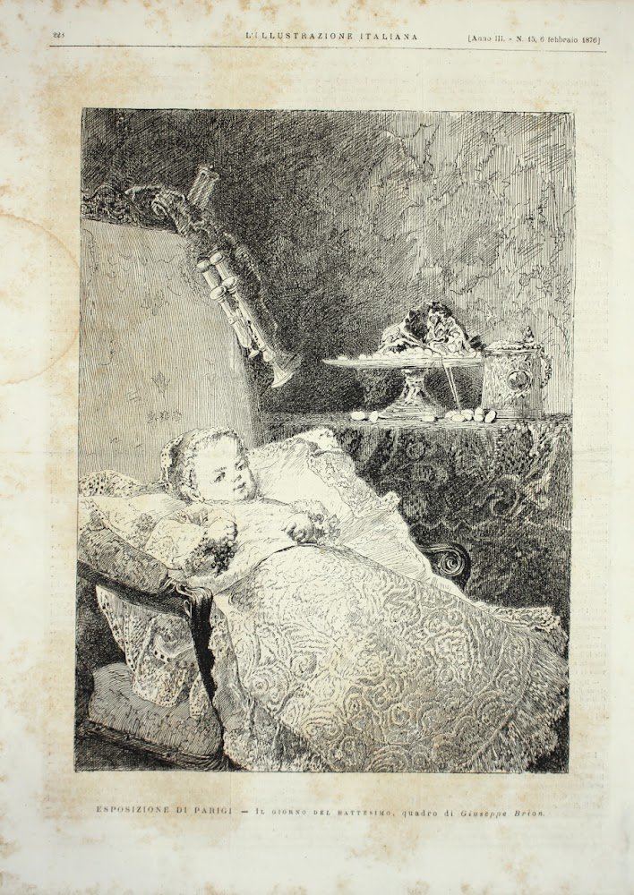 Esposizione di Parigi. Il giorno del battesimo, quadro di Giuseppe Brion. Stampa 1876