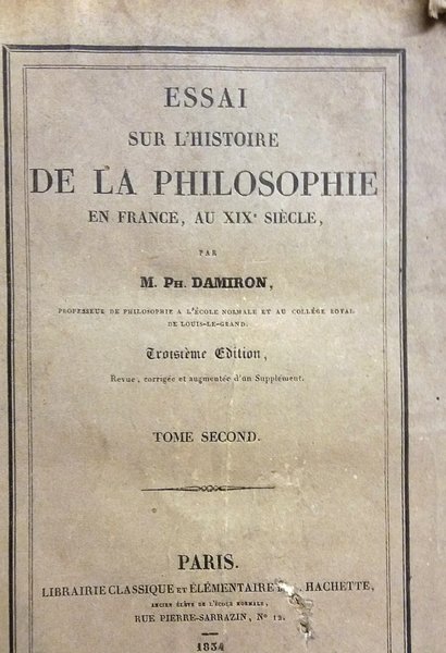 Essai sur l'histoire de la philosophie en France au XIX siecle. Tome second.