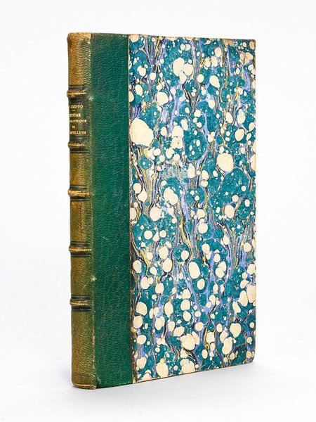 1 vol. in-8 reliure demi-chagrin vert, dos à 5 nerfs, Librairie Orientale de Dondey-Dupré Père et Fils, Paris, 1829, viij-274 pp. L'auteur, Vicaire dans le diocèse de Belley, évoque la confirmation des affirmations de Clément d'Alexandrie sur les trois types d'écritures égyptiennes par les théories de Champollion, puis l'intérêt de ces découvertes sur la compréhension de l'Ecriture Sainte (rapports des noms des pharaons avec les dénominations bibliques, chronologie de Manéthon, aperçus géographiques, zodiaques égyptiens, etc.). Etat très satisfaisant (mouill. courant sur l'intégralité des feuillets en bas de page, bon exemplaire par ailleurs).