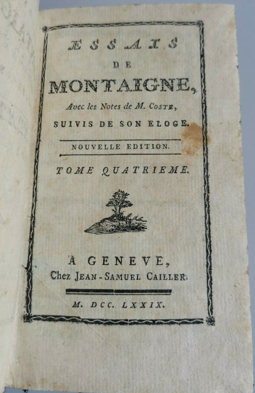 ESSAIS de Montaigne tomo 4 1779 Jean Samuel Cailler libro antico tome quatrieme