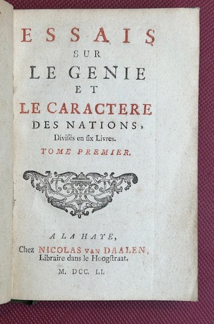 Essais sur le génie et le caractére des nations. Divisésnen six livres.