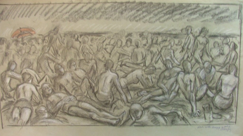 Disegno a matita su carta pesante grigia, cm. 30,5 x 72,5. Firma in basso a destra.