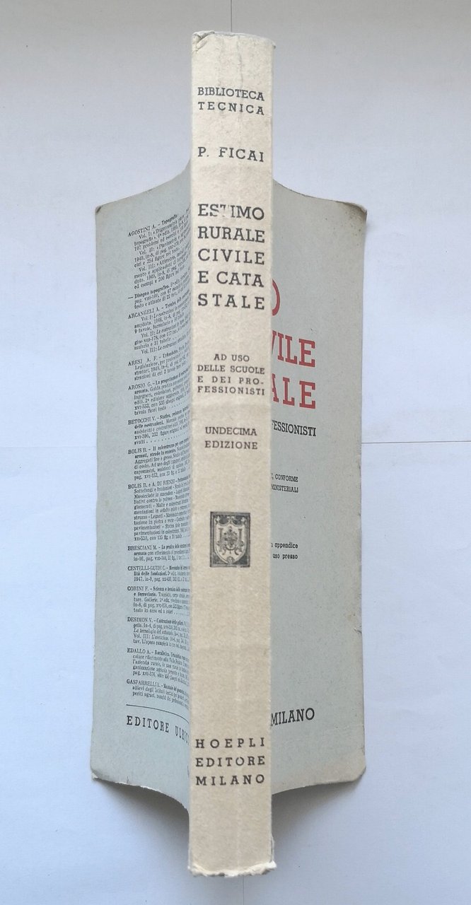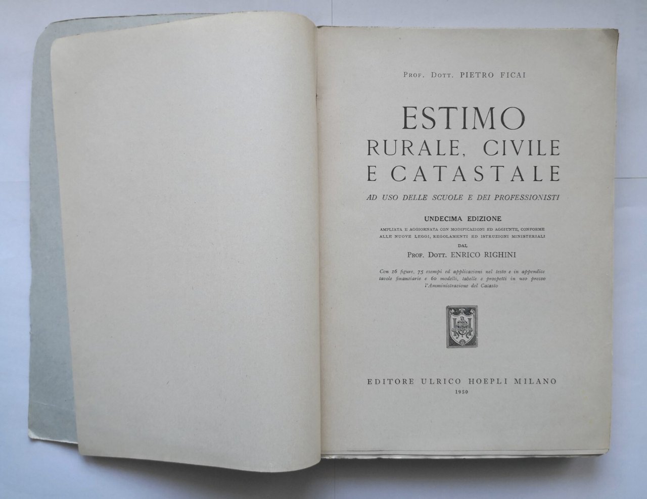 ESTIMO RURALE CIVILE E CATASTALE di Pietro Ficai 1950 Hoepli Libro Manuale scuol