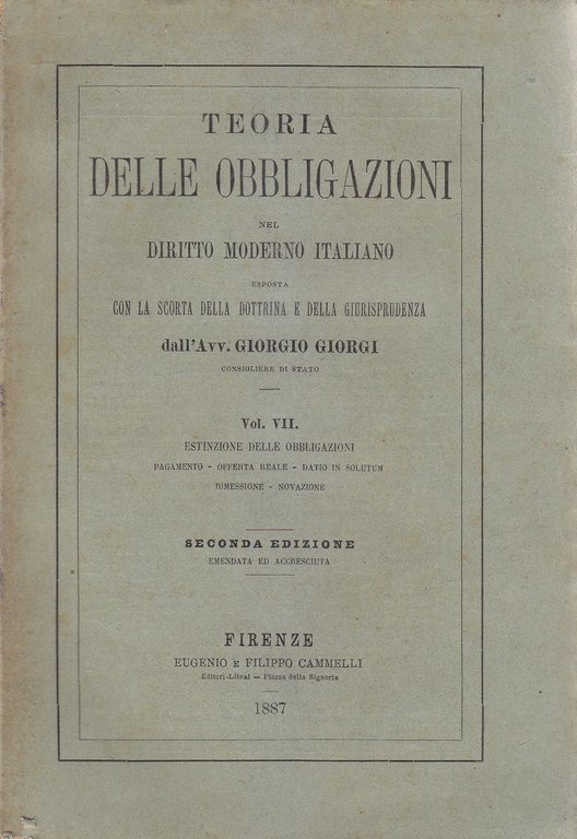 ESTINZIONE DELLE OBBLIGAZIONI di Giorgio Giorgi 1887 Cammelli Libro antico dirit
