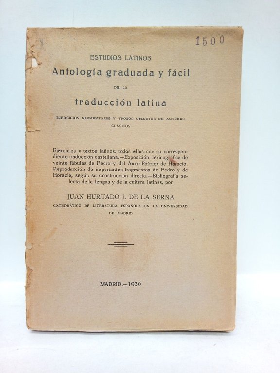 1ª Edición.- Madrid: (pero impreso en Cuenca, Imp. del Seminario Conciliar), 1930.- 390 p, [3 h.].;8º mayor (20 x14,3 cm); Intonso, Rústica Ed.* Las cubiertas algo ajadas pero restauradas. Lomera con pequeñas faltas. Por lo demás en buen estado. GRECIA Y ROMA, FILOLOGÍA CLASICA