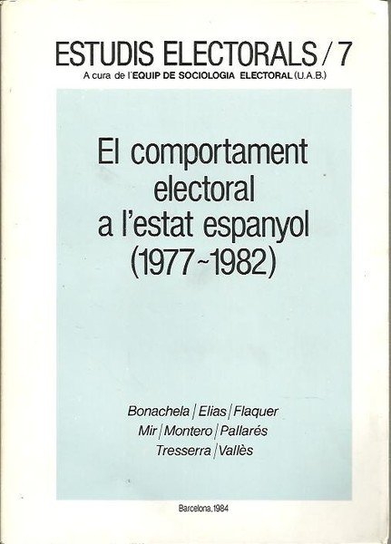 ESTUDIS ELECTORALS - 7. EL COMPORTAMENT ELECTORAL A L'ESTAT ESPANYOL (1977 - 1982).