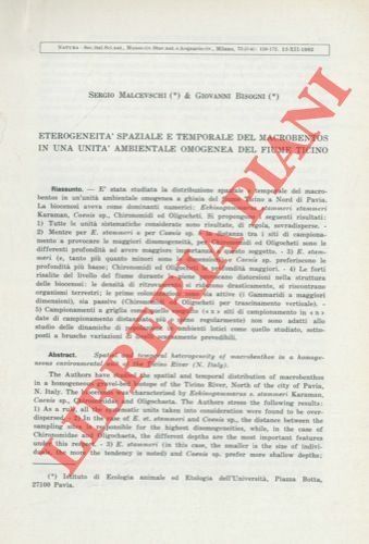 Eterogeneità spaziale e temporale del Macrobentos in una unità ambientale omogenea del fiume Ticino.