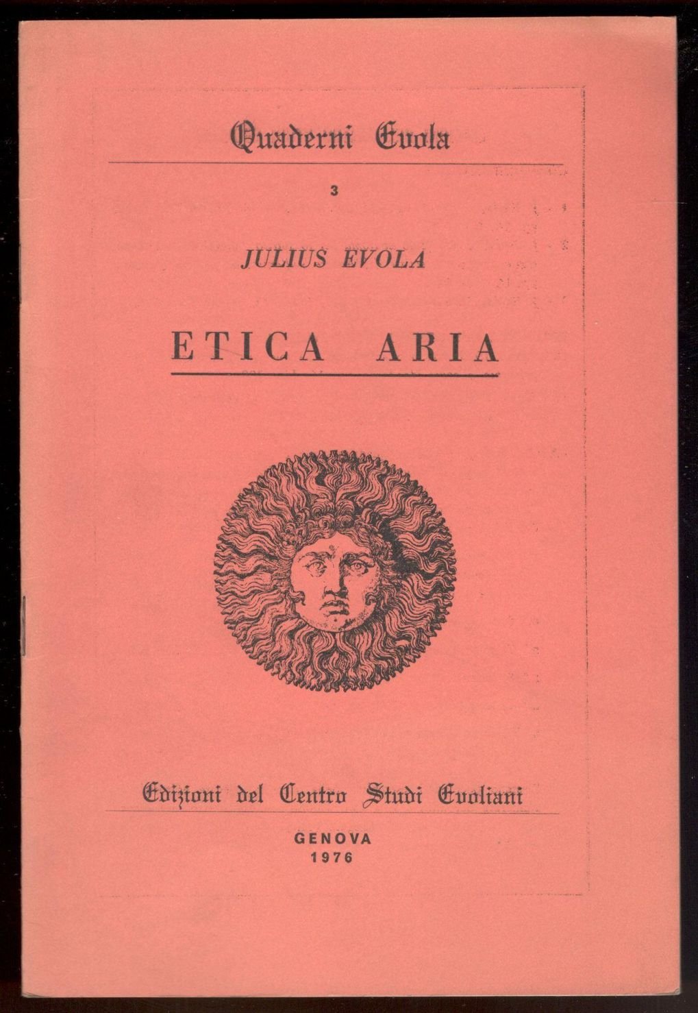 Opuscolo in 8°, pp. 16. Brossura editoriale spillata. Copia in buono stato. Quaderni Evola, n. 3.