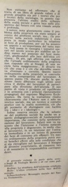 Soggetti: Sociologia, Economia, Sistemi, Scuole, Teorie, Propriété, Aspect social, Property, Moraltheologie, Moral and ethical aspects, Management, Employee participation, Syndicalism, Società, Giustizia sociale, Proprietà privata, Beni materiali, Ricchezza, Distribuzione, Etica cristiana, Teologia, Religione, Cattolicesimo, Marxismo, Bisogni, Lavoro, Magistero ecclesiastico, Chiesa, Morale, Ideologie, Pedagogia, Mezzi di produzione, Capitalismo, Liberismo, Consumismo, Relazioni sociali, Operai, Fabbrica, Capitale, Salario, Rendita, Reddito, Povertà, Veiter, Riemer, Questione sociale, Dibattiti, Classi, Riforma, Stato, Istituzioni, Assistenza, Diritto, Industrializzazione, Ordinamento, Comunità, Comproprietà, Maestranze, Sindacalismo, Feudalesimo, Beni pubblici, Imprenditori, Sfruttamento, Bibliografia, Libri rari, Libri Vintage, Sozialpolitik, Soziologie, Eigentumssoziologie, Versuch einer Systematisierung, Ethnosociology, Sociology, Economics, Systems, Schools, Theories, Society, Social Justice, Private Property, Material Goods, Wealth, Distribution, Christian Ethics, Theology, Religion, Catholicism, Needs, Work, Ecclesiastical Magisterium, Church, Moral, Ideologies, Pedagogy, Means of production, Capitalism, Liberism, Consumerism, Social relations, Workers, Factory, Capital, Salary, Annuity, Income, Poverty, Social Issue, Debates, Classes, Reform, State, Institutions, Assistance, Law, Industrialization, Sorting, Community, Co-ownership, Public goods, Entrepreneurs, Exploitation, Bibliography, Rare books