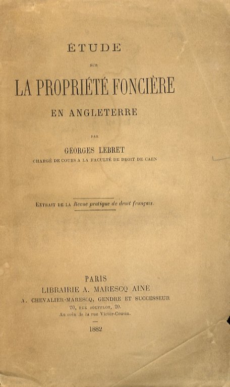 Étude sur la propriété foncière en Angleterre. Extrait de la Revue pratique de droit français.