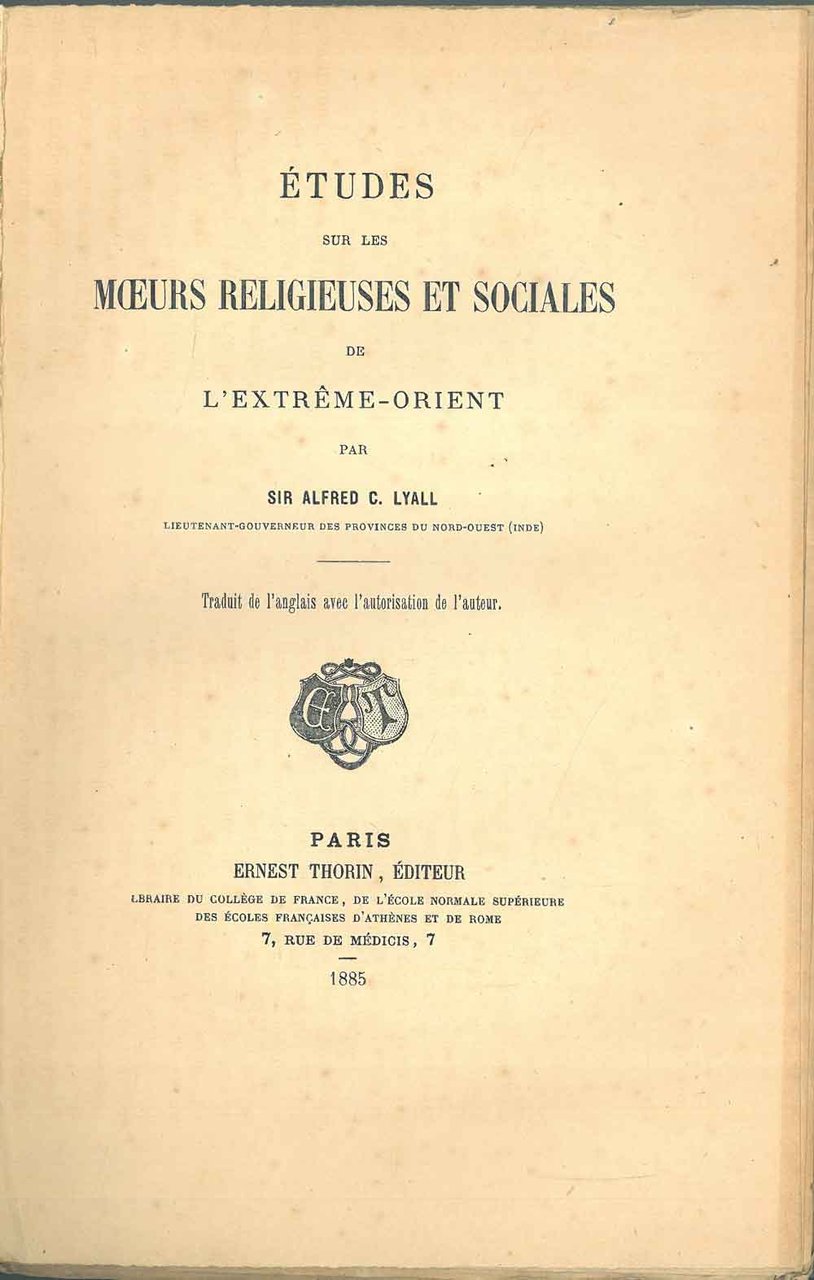Etudes sur les moeurs religieuses et sociales de l'lextreme - Orient. Traduit de l'anglais avec l'autorisation de l'auteur