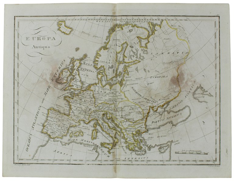 EUROPA ANTIQUA tratta da "Tabulae geographicae orbis veteribus noti", circa 1820 - Carta geografica d'epoca.