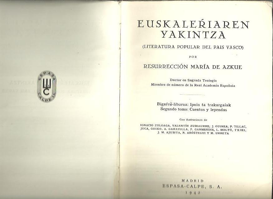 EUSKALERRIAREN YAKINTZA. LITERATURA POPULAR DEL PAIS VASCO. TOMO II.
