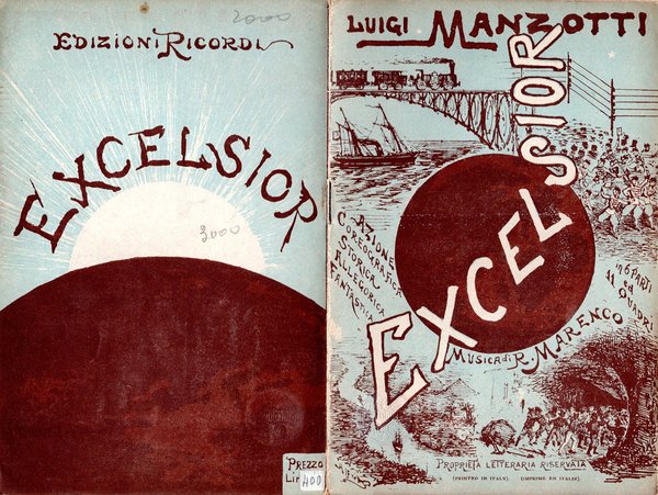 Azione coreografica, storica, allegorica e fantastica in 6 parti e 11 quadri di Luigi Manzotti. Teatro Comunale di Bologna Autunno 1883. Elenco degli interpreti. Excelsior venne realizzato secondo la formula del “grande ballo italiano” per celebrare il trionfo della scienza.