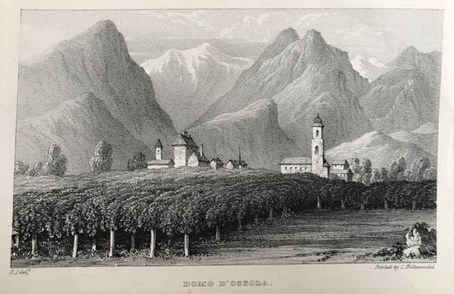 <span style="font-style: normal;">In-8° (cm. 22,5), legatura coeva in tela con fregi floreali a secco e titolo in oro al dorso (lievi segni d'usura); pp. [4] 276 in ottimo stato con 7 tavole litografiche f.t. incise da Charles Joseph Hullmandel su disegno di Elizabeth Ireland; dedica al risguardo (</span><i>Wilhelmina Welby. The affectionate gift of the much valued athor. May 29th 1836</i>). Edizione originale probabilmente pubblicata in pochissime copie a spese dell'autore nel sobborgo londinese di Chiswick, con inedite e suggestive vedute d'Italia (Domodossola, Canalgrande, Case sull'Arno, Arco di Tito, Castel Sant'Angelo, Pozzuoli, Superga) disegnate e descritte durante un viaggio. Rintracciati 2 soli esemplari alla Bodleian Library e alla British Library. Esemplare molto buono. (SO4)