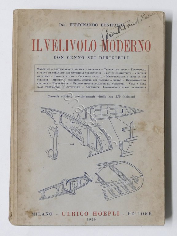 F. Bonifacio - Il velivolo moderno con cenno su dirigibili - 2^ ed. 1929 Hoepli Pag. 431, con 319 incisioni Copertina morbida - Testo in italiano. Condizioni molto buone. Piccole mancanze al dorso. Copertina come da foto.