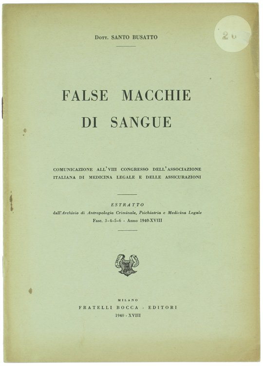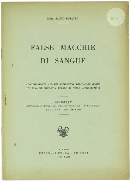 FALSE MACCHIE DI SANGUE. Comunicazione all'VIII Congresso dell'Associazione Italiana di Medicina Legale e delle Assicurazioni.