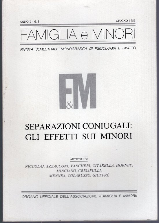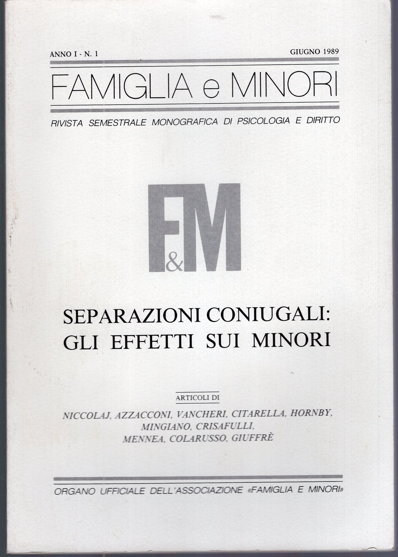 Famiglia e Minori Anno I - n. 1 Separazioni coniugali : gli effetti sui minori