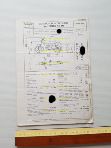 Fantic 50 Gran Turismo TX 240 1976 scheda omologazione DGM Facsimile originale
