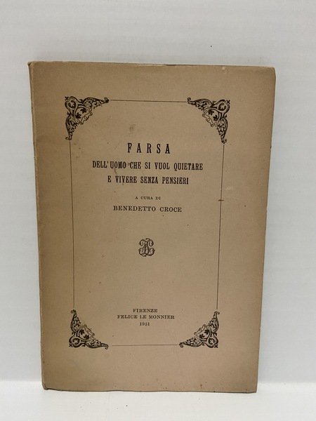 FARSA dell'uomo che si vuol quitare e vivere senza pensieri