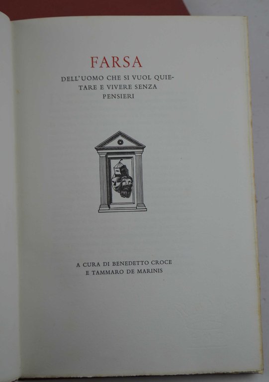 Farsa dell'uomo che si vuole quietare e vivere senza pensieri. A cura di Benedetto Croce e Tammaro de Marinis.
