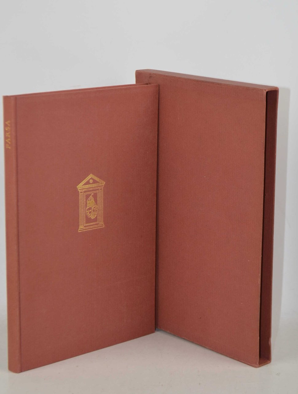 Cm. 24,5, pp. x, 76. Con una xilografia di Italo Zetti al frontespizio e ripetuta al piatto anteriore e tre calcografie nel testo che riproducono l'originale. Leg. edit. in cart. rigido con titoli al dorso. Entro custodia. Minime fioriture ai tagli, peraltro ottima conservazione. Farsa cinquecentesca ripubblicata a cura, con prefazione e note di Tammaro De Marinis e Benedetto Croce. Edizione a tiratura limitata di 200 copie numerate (ns. n. 96) stampata su carta dei Fratelli magnani di Pescia e col torchio a mano dell'Officina Bodoni. Cfr. Mardersteig Cat. Off. Bodoni n.70.