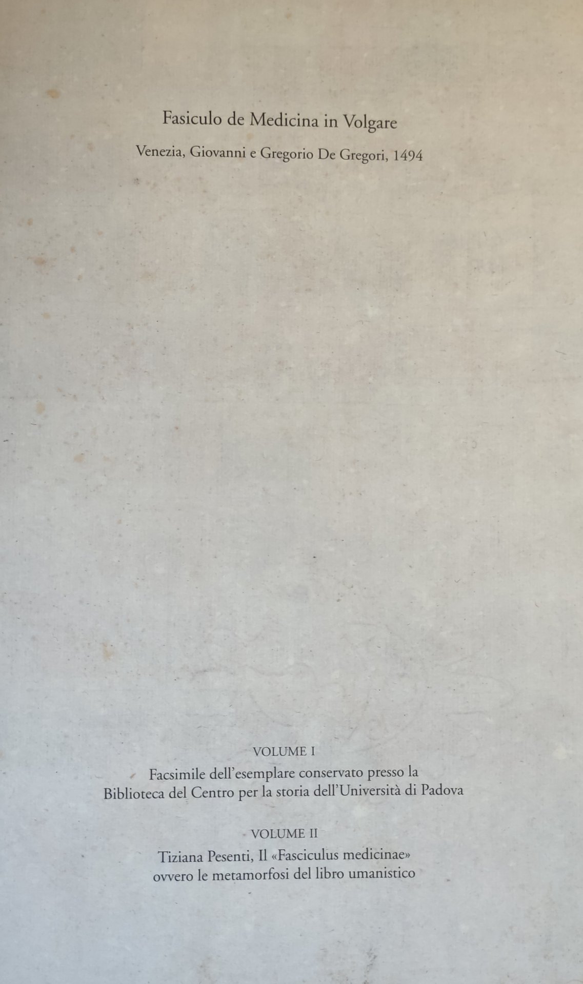 Vol. II: Tiziana Pesenti, Il «Fasciculus medicinae» ovvero le metamorfosi del libro umanistico. Iill. a colori ed in bianco e nero, anche f.t. in quarto leg. cart. con cofanetto 2 voll. Ottimo (Fine) Ottimo es..