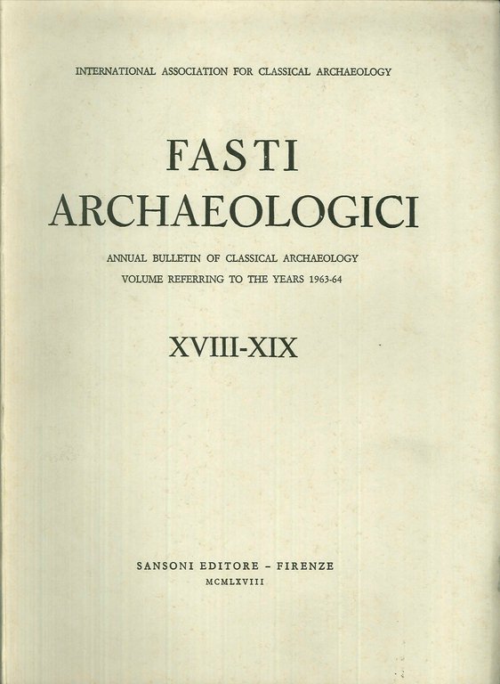 Fasti Archaeologici. Annual Bullettin of Classical Archaeology. XVIII-XIX. Referring to the years 1963-64