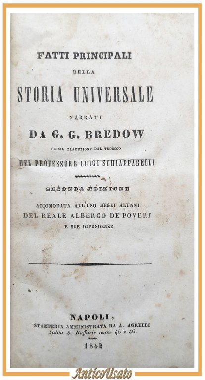 FATTI PRINCIPALI DELLA STORIA UNIVERSALE di Bredov 1842 Agrelli Libro antico