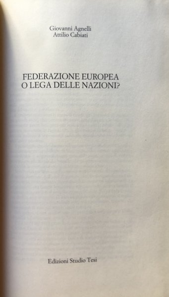Una sorta di filo rosso collegava idealmente l'adesione dell'avvocato Gianni Agnelli alla causa europeista e la proposta formulata fin dal 1918 da suo nonno fondatore della Fiat per l'avvento di una Federazione europea: il fermo convincimento che l'integrazione politica ed economica del Vecchio Continente fosse condizione indispensabile per l'evoluzione sociale dei popoli e per un più intenso processo di sviluppo. Scritto nel 1916, e pubblicato nel 1918.