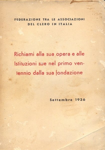 Federazione tra le associazioni del Clero in Italia. Richiami alla sua opera e alle Istituzioni sue nel primo ventennio dalla sua fondazione.