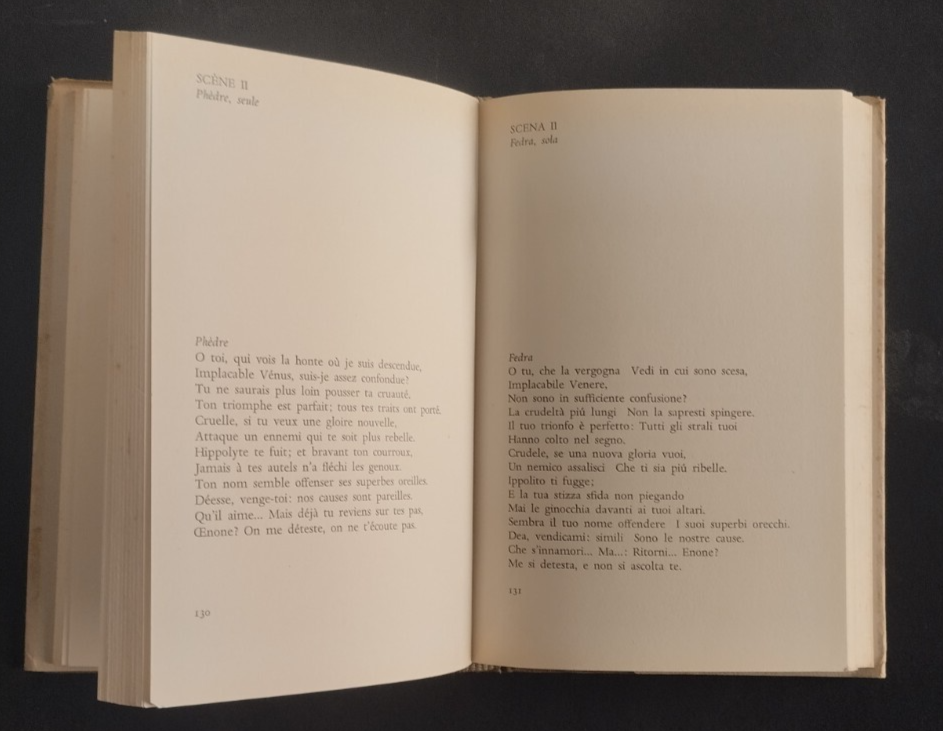 FEDRA DI JEAN RACINE di Giuseppe Ungaretti. Mondadori Editore, lo specchio, 1963 . 246 pagine. Copertina editoriale in tutta tela con sovraccoperta. Stato di conservazione: molto buono (pagine normalmente ingiallite) Libro usato poesia letteratura italiana