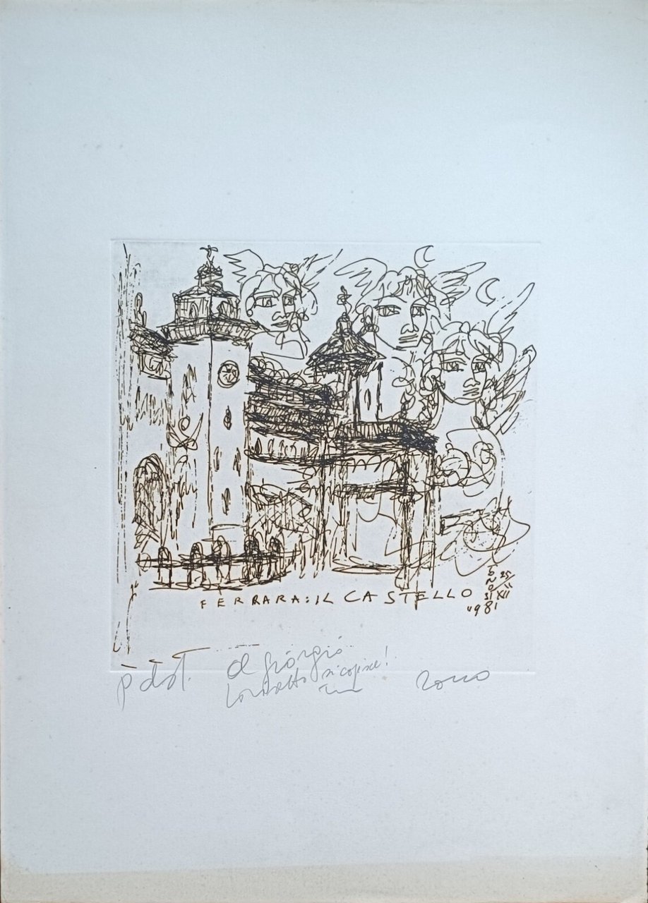 acquaforte cm. (inciso) 32,5 x 35 - (foglio) 50 x 69,6 Buono (Good) Buon es., segni di foxing ai margini e dedica in matita.
