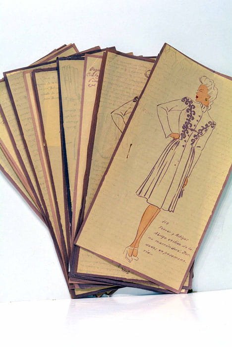 27 feuilles. Dessins côté recto et commentaires côté verso. En feuilles. Petits accrocs. Sinon très bien conservés. Ces 27 feuilles présente une collection unique de dessins de mode. À une époque marquée par des bouleversements mondiaux, il capture l'essence de la créativité et de l'innovation dans le domaine de la haute couture. Les illustrations mettent en lumière les œuvres de designers tels que Lucien Lelong, Ferrer y Artigas, Jacques Fath, Jeanne Lanvin, et Elsa Schiaparelli, reflétant la richesse et la diversité stylistique de cette période. Ces dessins témoigne de l'histoire de la mode et offre un aperçu précieux des tendances et des influences qui continuent de façonner la mode contemporaine.