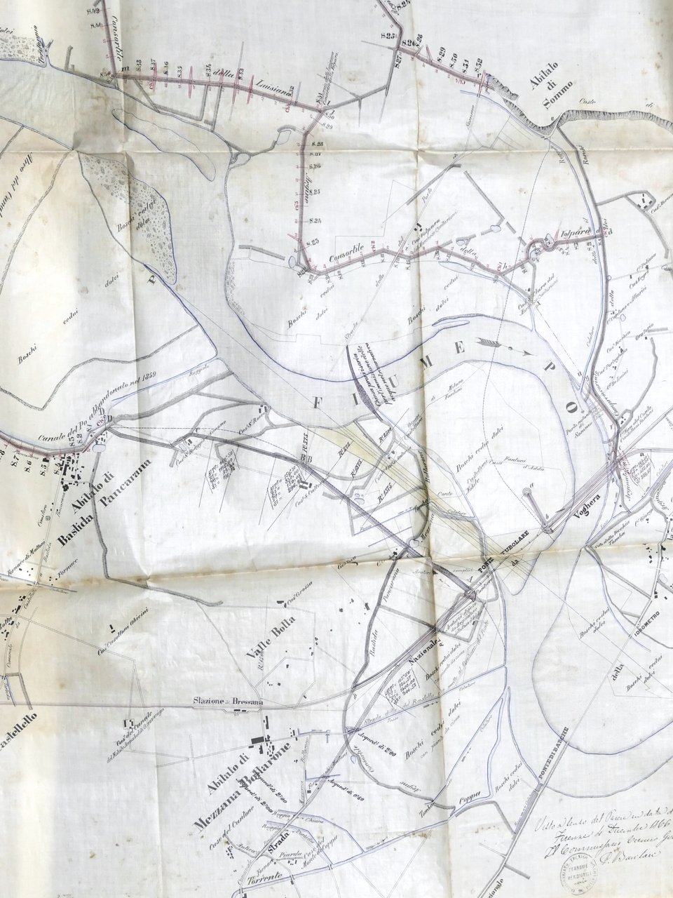 Ferrovie Linea Voghera Brescia Sistemazione Arginature Consortili del Po - 1866
