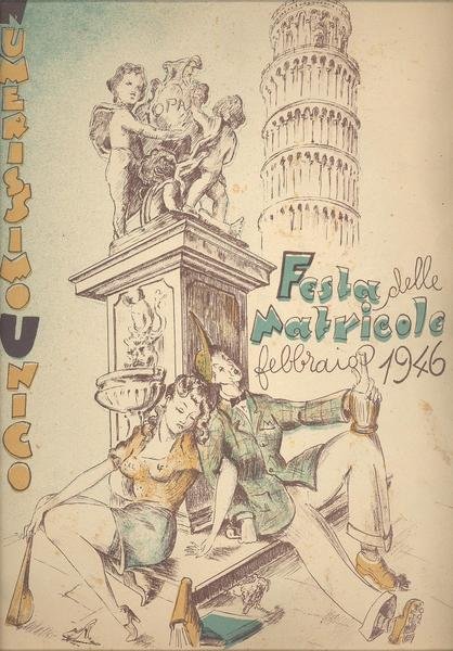 IN 4°, pp.20 + 4 c. in c. AZZURRA CON PUBBLICITA'. COPERTINA EDITORIALE ILLUSTRATA a col. CON TITOLO. NUMEROSE ILLUSTRAZIONI E VIGNETTE SATIRICHE NEL TESTO. NUMERO UNICO DELLA FESTA DELLE MATRICOLE DEL 1946 DELL'UNIVERSITA' DI PISA. OTTIMA CONSERVAZIONE DI QUESTO RARO NUMERO UNICO. ID, 6202