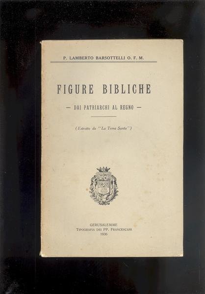 IN 8°, pp.189, COPERTINA EDITORIALE CON TITOLO E LOGO DEI PADRI FRANCESCANI.<BR>NUMEROSE FIGURE in b/n. NEL TESTO. DALL'INDICE: MOSE', ABRAMO, ISACCO, GIACOBBE, GIUSEPPE, MOSE', GIOSUE', GEDEONE, JEFTE, SANSONE, SAMUELE, DAVID. ESTRATTO DALLA TERRA SANTA. AL FRONTESPIZIO, DEDICA AUTOGRAFA DELL'AUTORE AL R.P. GUARDIANO DI PIOMBINO. SIENA 10 GENNAIO 1938. OTTIMA CONSERVAZIONE.ID 4787