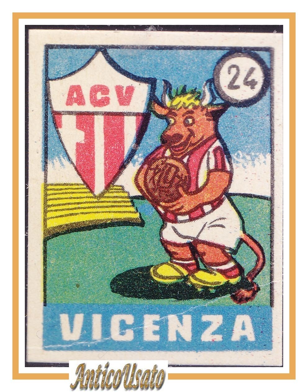 FIGURINA calcio VICENZA mascotte scudetto 1949 Originale Mundus o Nannina