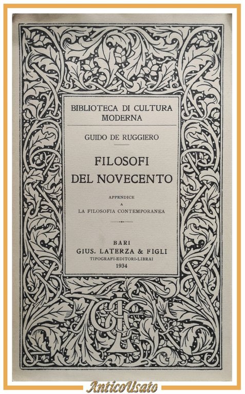 FILOSOFI DEL NOVECENTO di Guido De Ruggiero 1934 Laterza Libro contemporanea