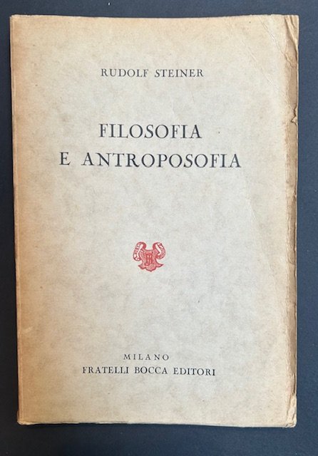 In-8°, pp. 121, brossura editoriale. Rudolf Steiner fu un teosofo austriaco (Kraljevica 1861 - Dornach, Basilea, 1925), fondatore dell'antroposofia. Segretario generale della sezione tedesca della Società teosofica, ne uscì (1913) per un contrasto con Annie Besant, fondando una società dissidente, detta appunto di antroposofia, che ebbe la sua sede a Dornach in un edificio detto Goetheanum. Propugnava un potenziamento dei mezzi conoscitivi umani mediante pratiche di meditazione e di concentrazione che dovevano portare, attraverso l'ispirazione, fino all'intuizione. La storia era concepita da S. come svolgimento della lotta dualistica tra un Cristo solare e Ahriman. Importante l'influenza sulle sue concezioni del pensiero indiano e della filosofia di Nietzsche e, nel suo primo periodo, della filosofia della natura di Goethe. Si fece inoltre attivo propugnatore delle sue idee in campo pedagogico, dando vita a un'istituzione scolastica privata, le Waldorfschulen (Treccani)