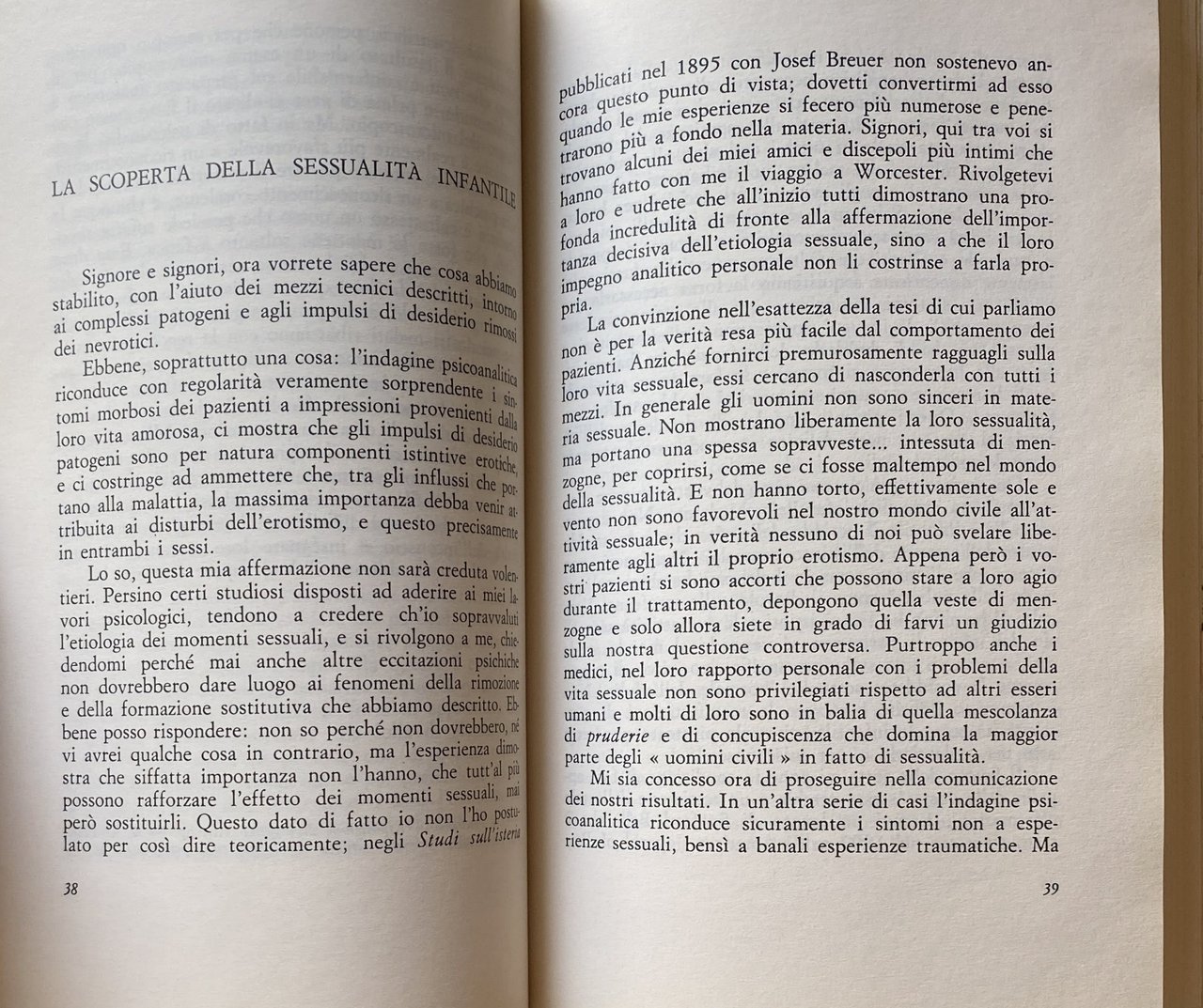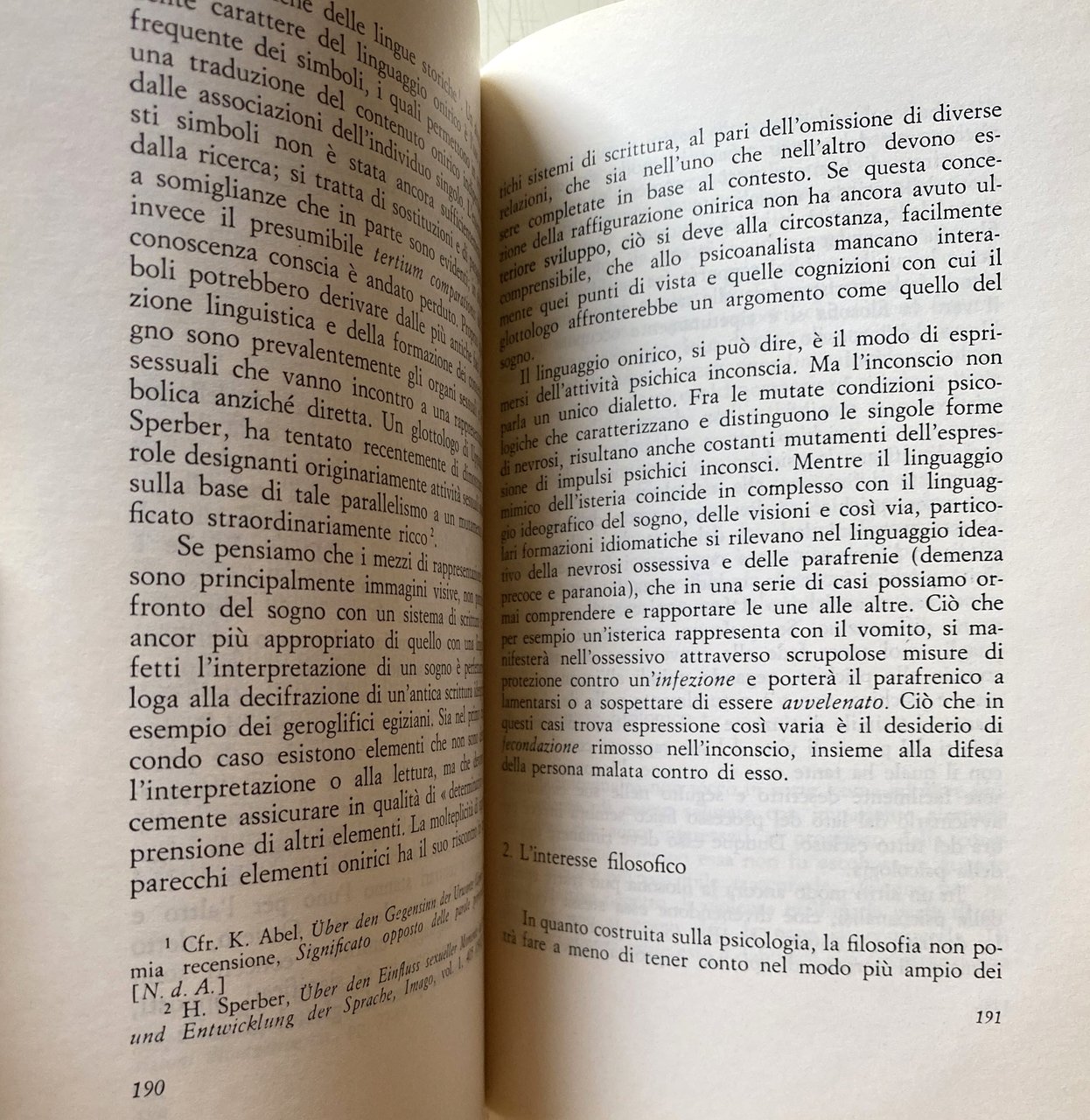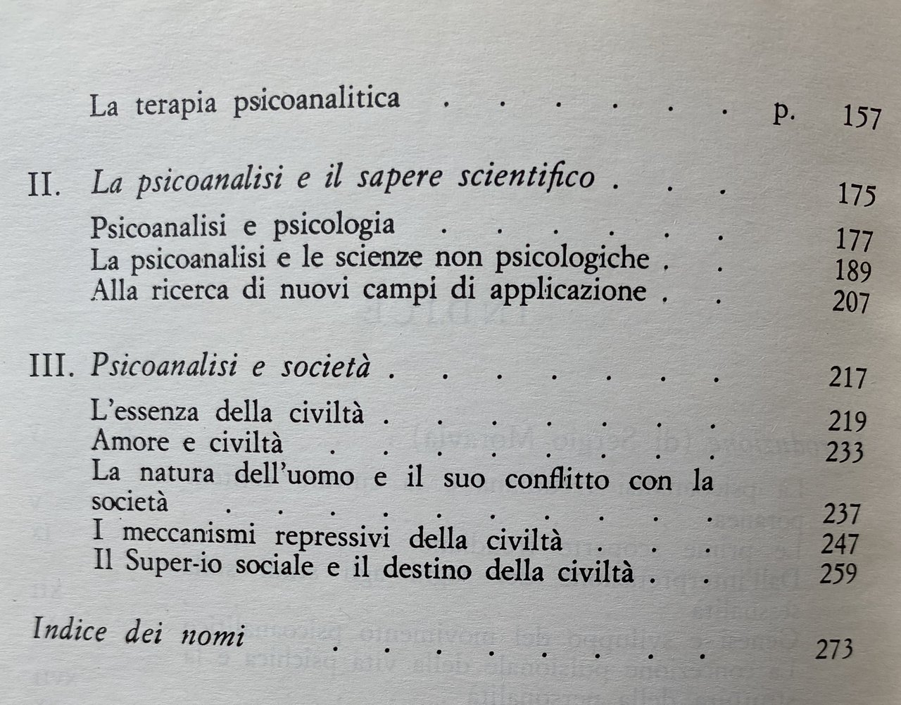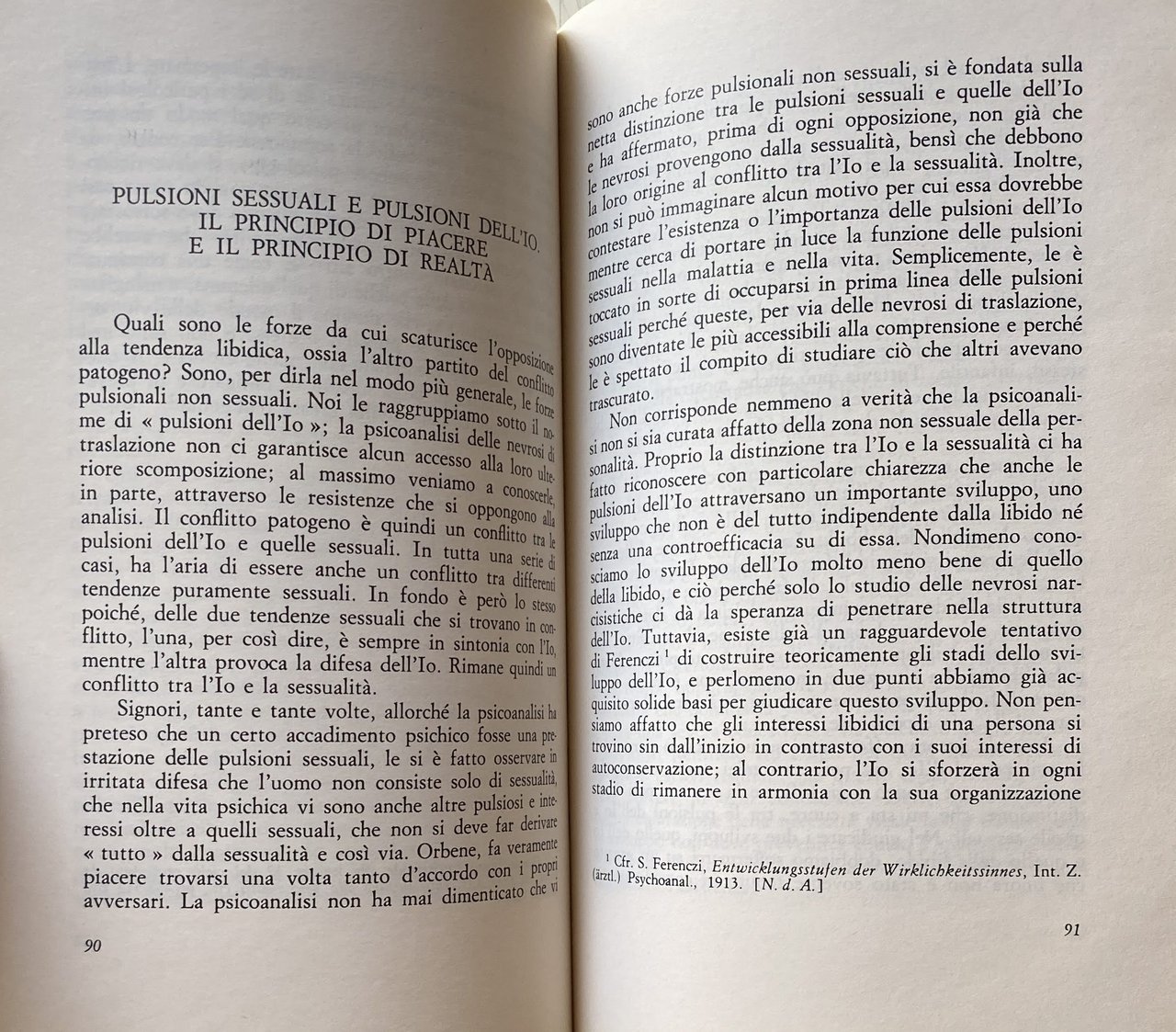 Soggetti: Psicologia Psicoanalisi freudiana Cultura contemporanea Libertinaggio Vizio Dibattiti filosofici Opera Scienze Linguistica Antropologia Sociologia Saggi Sidney Hook John D. Sutherland Critica Dewey Popper Sartre Adorno Merleau-Ponty Marcuse Scoperte freudiane Interpretazione dei sogni Studi Sessualità Genesi Movimento psicoanalitico Concezione pulsionale Vita psichica Struttura Personalità Psiche Malattie mentali Disturbi psichici Infanzia Es Io Nevrosi Rimozione Sintomo Terapia psicoanalitica Transfert Sanità Malattia Ricerche storico-religiose Disagio della civiltà Bibliografia Riferimento Libri rari fuori catalogo Collezionismo Antologie Raccolte Dottrina psicoanalitica Metodo psicoanalitico I sogni Sessualità infantile Attività psichica Conflitti interiori Pulsioni sessuali Piacere Principio di realtà Libido Significato Resistenza Sintomi Simbolismo Fenomenologia Traslazione Sapere scientifico Applicazione Società Essenza Scritti Testi Amore Natura Uomo Conflitto Meccanismi repressivi Super-io sociale Destino Carl Gustav Jung Austria Svizzera Europa Germania Francia Ernst Jones Abel Abraham Adler Charcot Darwin Sandor Ferenczi Fornari Frazer Fromm Gombrich Kant Melanie Klein Janet Jensen Malinovski Nietzsche Otto Rank Reik Sachs Schopenhauer Shakespeare Stekel Sutherland Max Weber Smith Pfister Comportamento Benjamin Nelson Aggressività Analitica Atti mancati Bambino Bisogno brano Complesso edipico Edipo Inconscio Coscienza morale Desiderio Fenomeni Formazione Impulsi Ipnosi Isterici Istinti Josef Breuer Isteria Lavoro onirico Medico Mente Ossessiva Normale Oggetto Padre Patogeno Paziente Problema Processo psichico Realtà Relazioni Resistenza Rimosso Colpa Sostituzione Suggestione Tecnica Teoria Totem e tabù Totemismo Traslazione Zone erogene Fase orale anale genitale Identificazione Lezioni Università Allievi Preconscio Erotismo Diagnosi Cura Gesammelte Schriften Werke Lettere Carteggio Linguaggio Novecento Musatti Clark Psychology Freudian psychoanalysis Contemporary culture Libertinism Vice Philosophical debates Work Sciences Linguistics Anthropology Sociology Essays Criticism Discoveries Interpretation of dreams Studies Sexuality Genesis Psychoanalytic movement Instinctive conception Psychic life Structure Personality Psyche Mental illnesses Disorders Childhood Id Ego Neurosis Repression Psychoanalytic therapy Health Illness Historical-religious research Civilization's discontent Bibliography Reference Rare books out of print Collectibles Anthologies Collections Psychoanalytic doctrine Psychoanalytic method Dreams Childhood sexuality Psychic activity Internal conflicts Sexual impulses Pleasure Reality principle Meaning Resistance Symptoms Symbolism Phenomenology Transference Scientific knowledge Application Society Essence Writings Texts Love Nature Man Repressive mechanisms Social superego Destiny Switzerland Europe Germany France Behavior Aggression Analytical Acts missed Child Need piece Oedipus complex Unconscious Moral conscience Desire Phenomena Formation Impulses Hypnosis Hysterics Instincts Hysteria Dream work Doctor Obsessive Mind Normal Object Father Pathogen Patient Problem Psychic process Reality Relationships Resistance Repressed Guilt Substitution Suggestion Technique Theory Taboo Totemism Transference Erogenous zones Oral anal genital phase Identification Lessons University Students Preconscious Eroticism Diagnosis Treatment Letters Correspondence Language Twentieth century