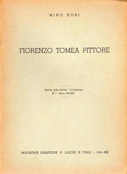 Fiorenzo Tomea Pittore, anno 1941, formato 18.5 x 26,5.Copertina morbida di colore grigio con titoli in nero. Estratto dalla rivista "Il Campano" n. 7 anno 1941.Bruniture al piatto anteriore. Nel complesso condizioni molto buone.