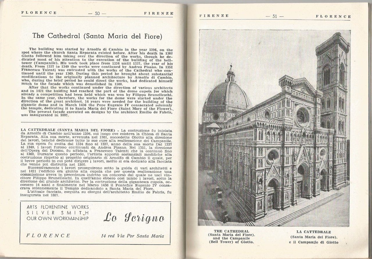 144 pagine, testo didascalico in italiano e inglese, riccamente illustrata con immagini in bianco e nero e colori di musei e gallerie e pubblicità di ristoranti, negozi, gallerie d'arte e ditte artigianali. copertina editoriale in brossura a colori. stato di conservazione: molto buono (pagine normalmente ingiallite)