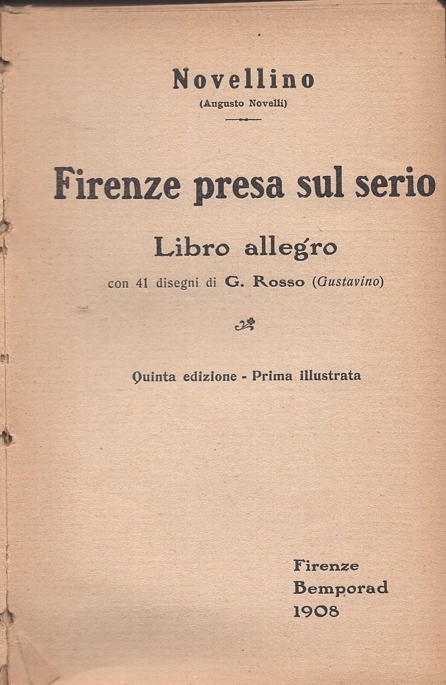 Libro allegro con 41 disegni di G. Rosso (Gustavino). Legatura artigianale con tassello srampato su carta al dorso